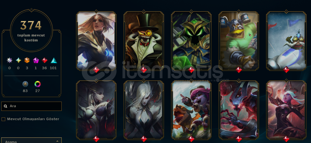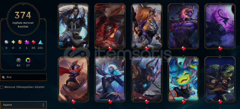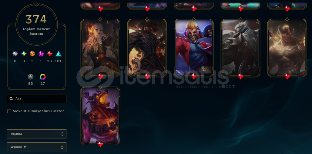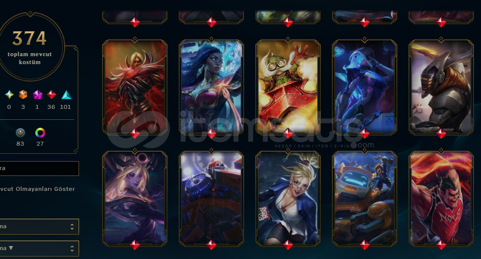 HESAP TURKEY SUNUCU4 SEVİYE TAKTİR MEVCUTHESAP PLATIN RANKHESAP SEVİYESİ 376 LEVELHESAP 374 ADET SKİN MEVCUTÖNEMLİ SKİN FOTOĞRAF OLARAK EKLEDİM MERAK EDİLEN SKİN VARSA ARAMA YAPABİLİRİMHESAP SATIN ALDIKTAN SONRA MAİL-ŞİFRE-TELEFON DEĞİŞTİREBİLİRSİNİZ