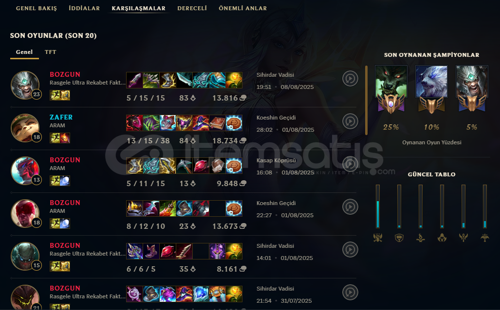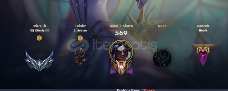 HESAP TURKEY SUNUCUHESAP SEVİYESİ 354 LEVELHESAPTA ASLA BİR SORUN YOKTUREN SON OYNANMA TARİHİ 2 3 AY ÖNCE OYNANMIŞTIR HESAP PASİF BİR HESAPTIRHESAPTA TOPLAM 117 ADET SKİN MEVCUTHESAPTA TOPLAM 171 ADET HERO VARDIRHESAP SATIN ALDIKTAN SONRA MAİL-ŞİFRE DEĞİŞTİREBİLİRSİNİZ