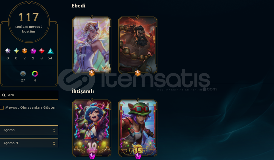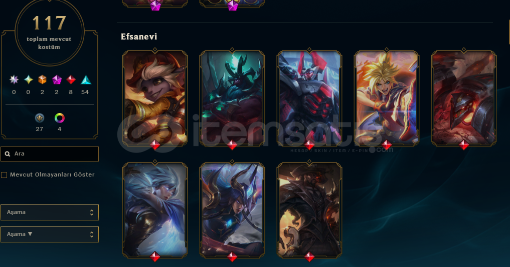 HESAPTA TOPLAM 117 ADET SKİN MEVCUT