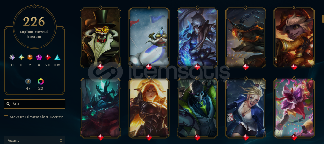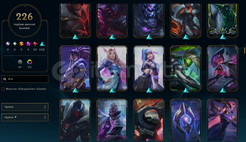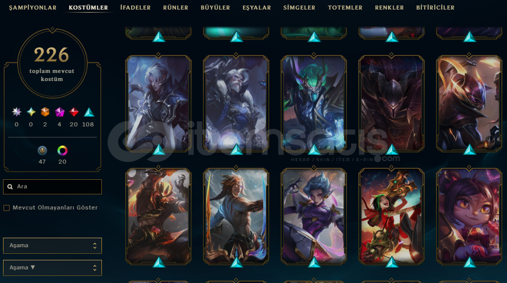 HESAPTA 226 ADET SKİN MEVCUTHESAP TURKEY SUNUCUHESAP SILVER RANKHESAP SATIN ALDIKTAN SONRA MAİL-ŞİFRE DEĞİŞTİREBİLİRSİNİZHESAP SEVİYESİ 353 LEVELHESAPTA SORUN YOKTUR TEMİZDİR