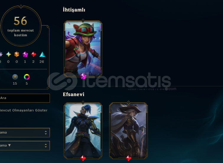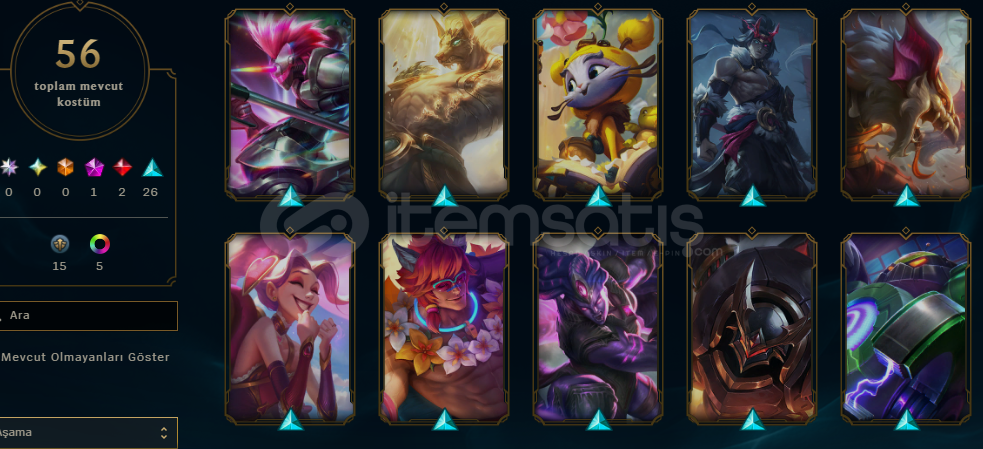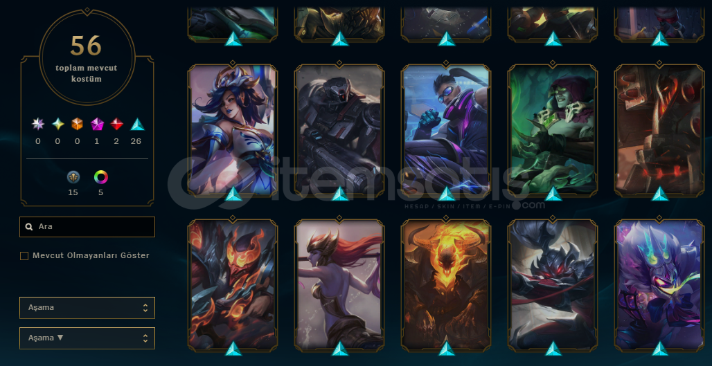 HESAP TURKEY SUNUCUHESAPTA 56 ADET SKİN MEVCUTHESAP SATIN ALDIKTAN SONRA MAİL-ŞİFRE TELEFON DEĞİŞTİREBİLİRSİNİZHESAP SEVİYESİ 260 LEVELHESAPTA SORUN YOKTUR