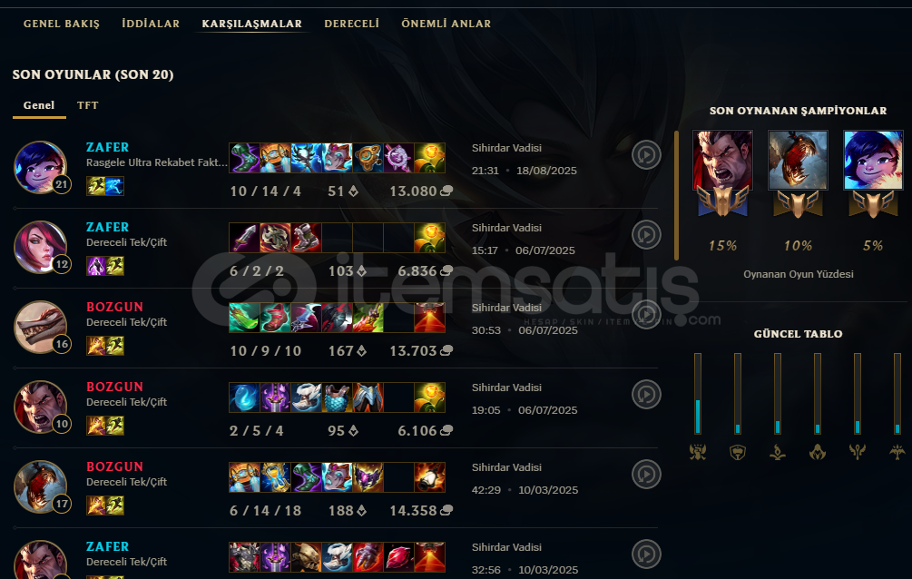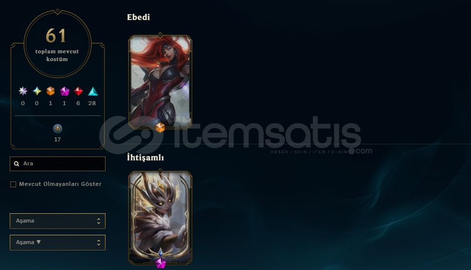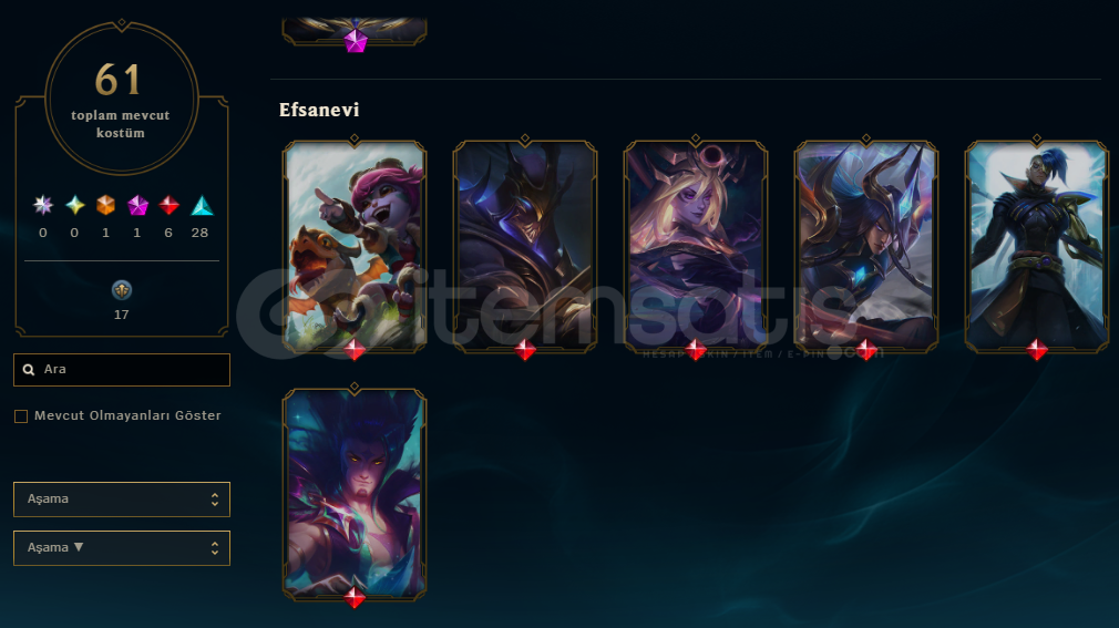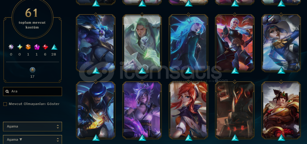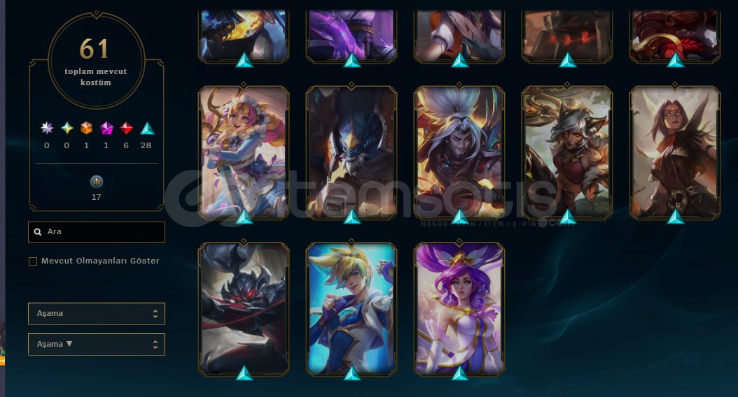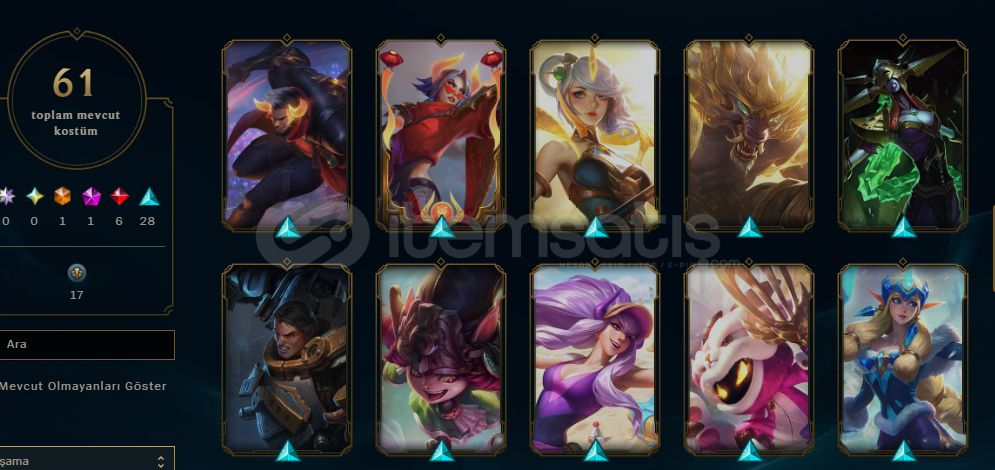 HESAP TURKEY SERVERHESAP SİLVER HESAP SEVİYESİ 141 LEVELHESAP 61 ADET SKİN MEVCUTHESAPTA 105 ADET CHAMPİONS MEVCUTHESAP SATIN ALDIKTAN SONRA MAİL-ŞİFRE DEĞİŞTİREBİLİRSİNİZ
