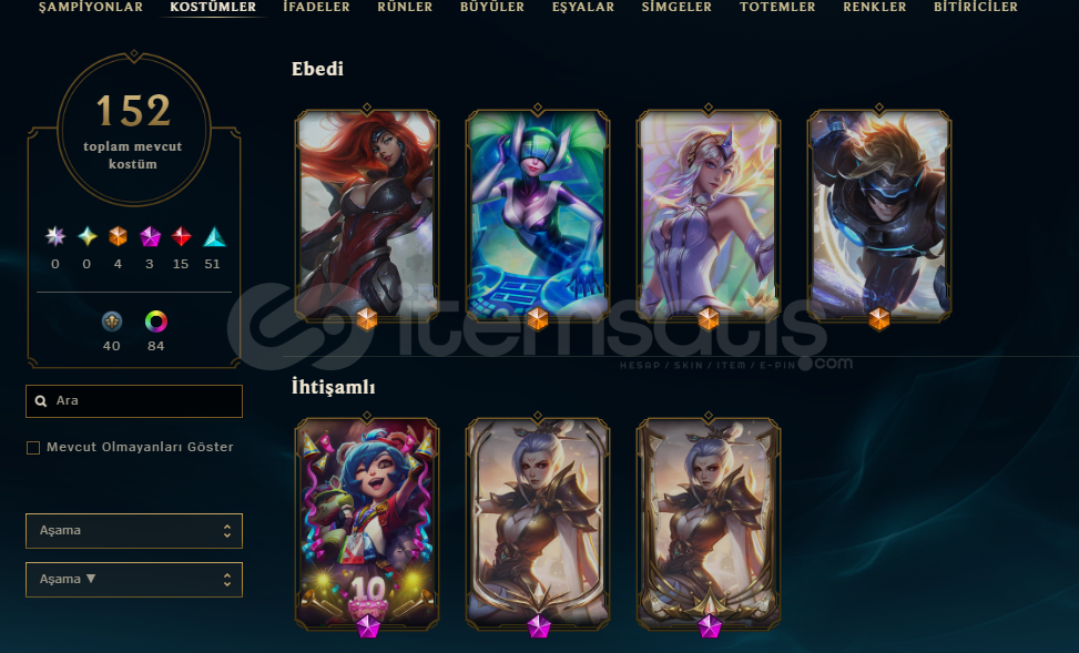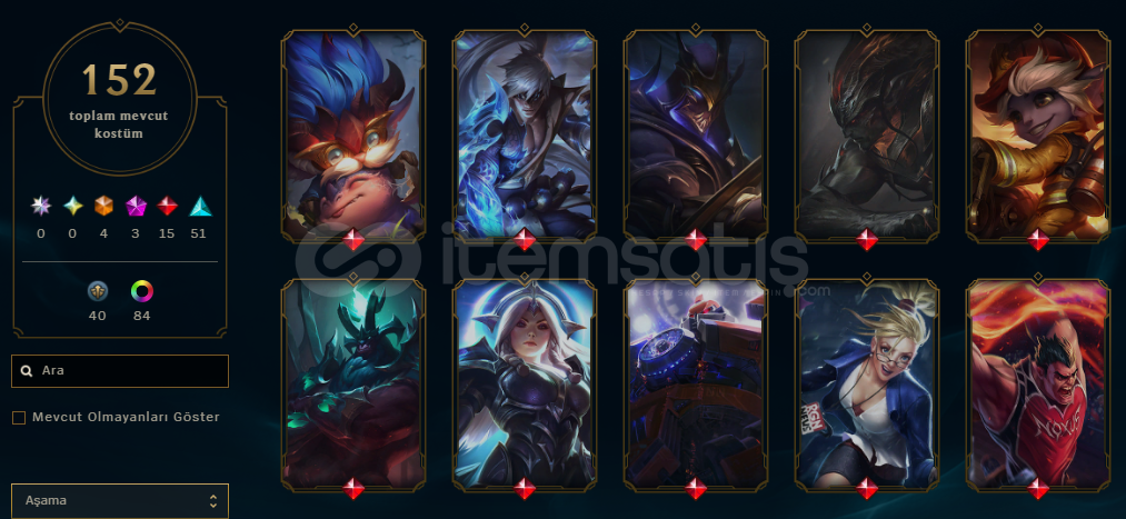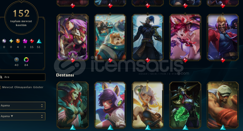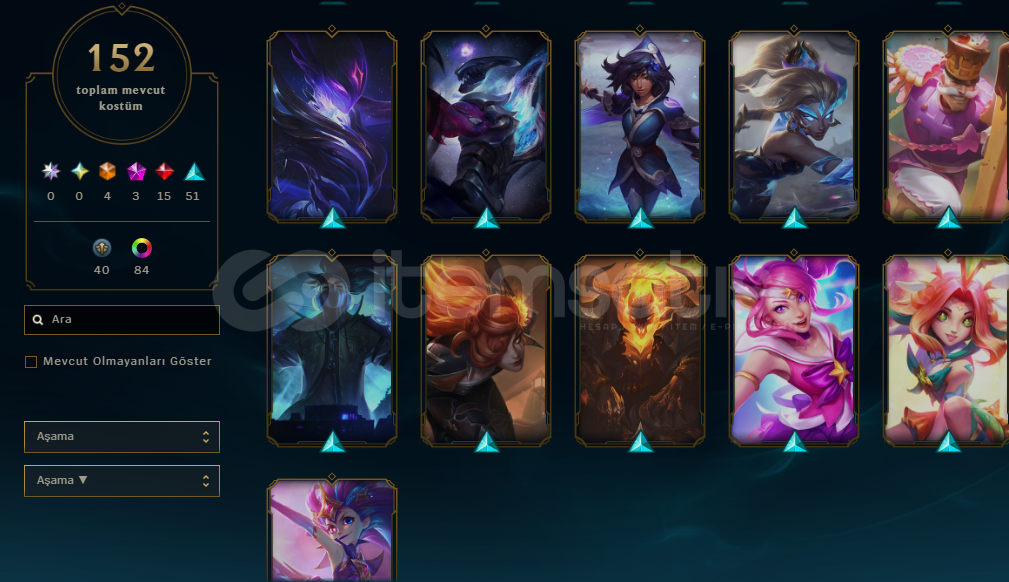 HESAPTA 152 ADET SKİN MEVCUT