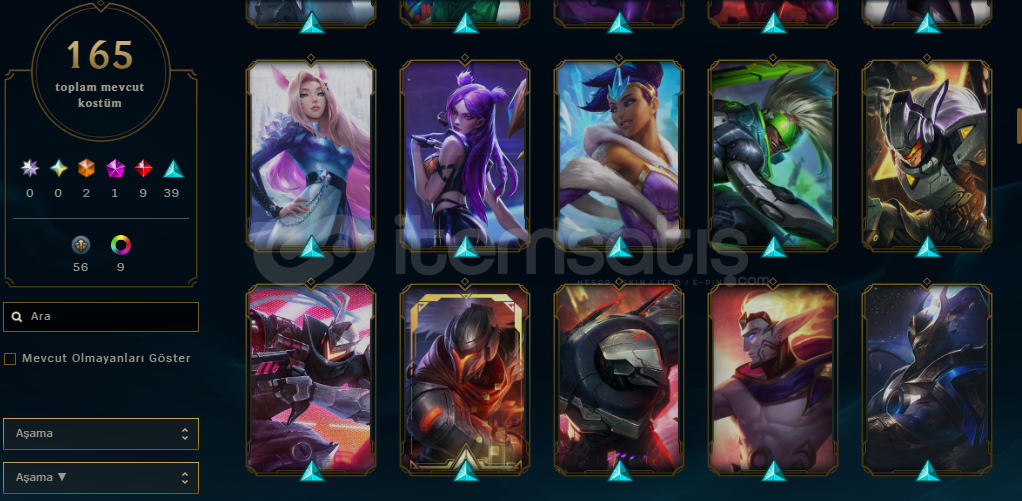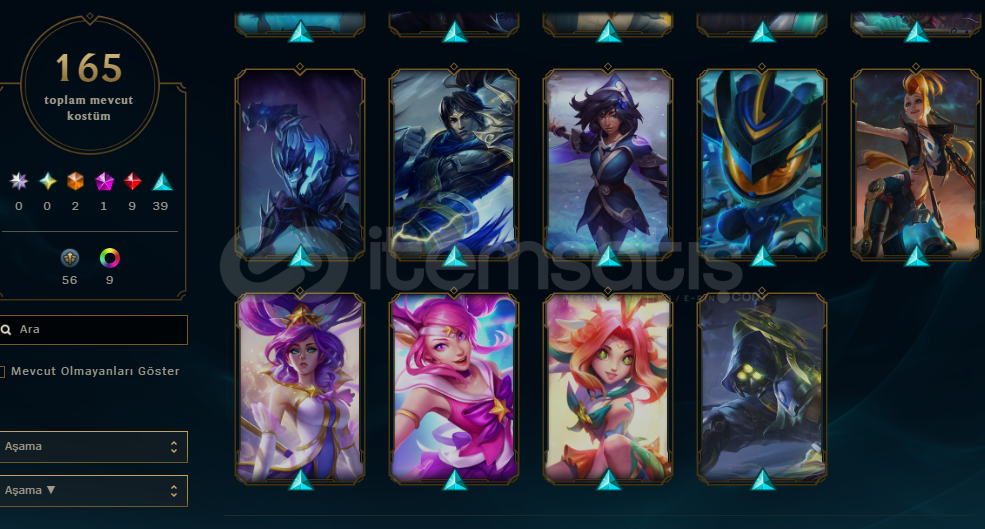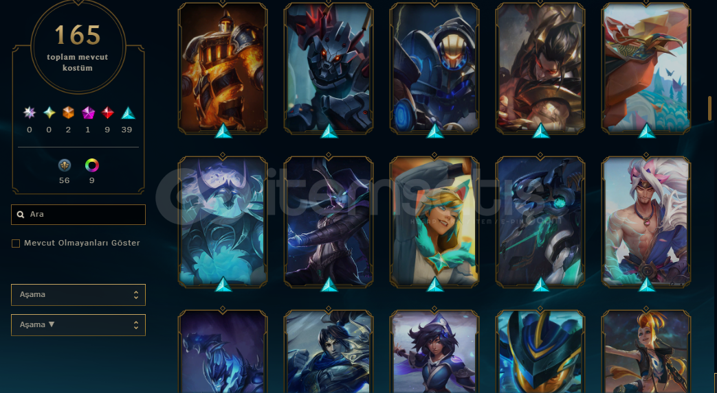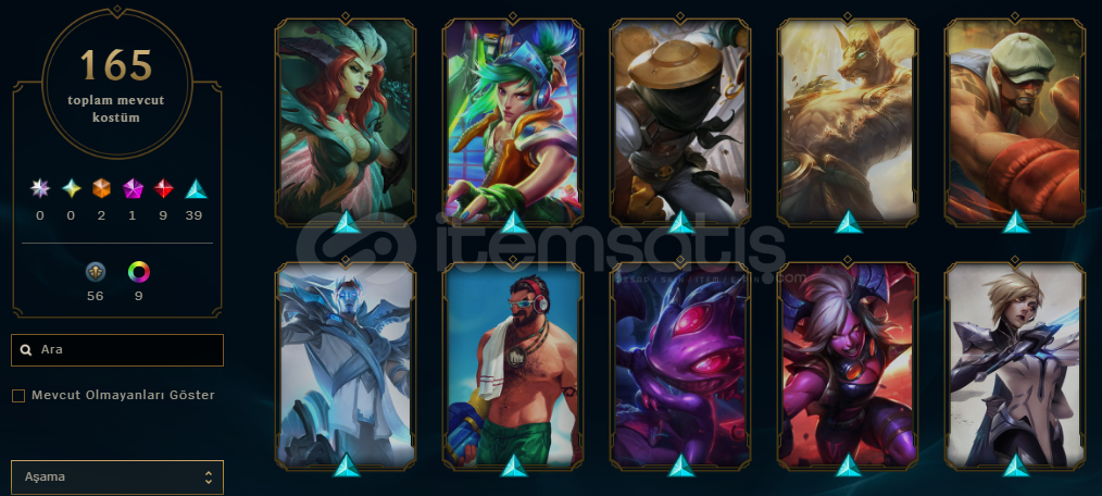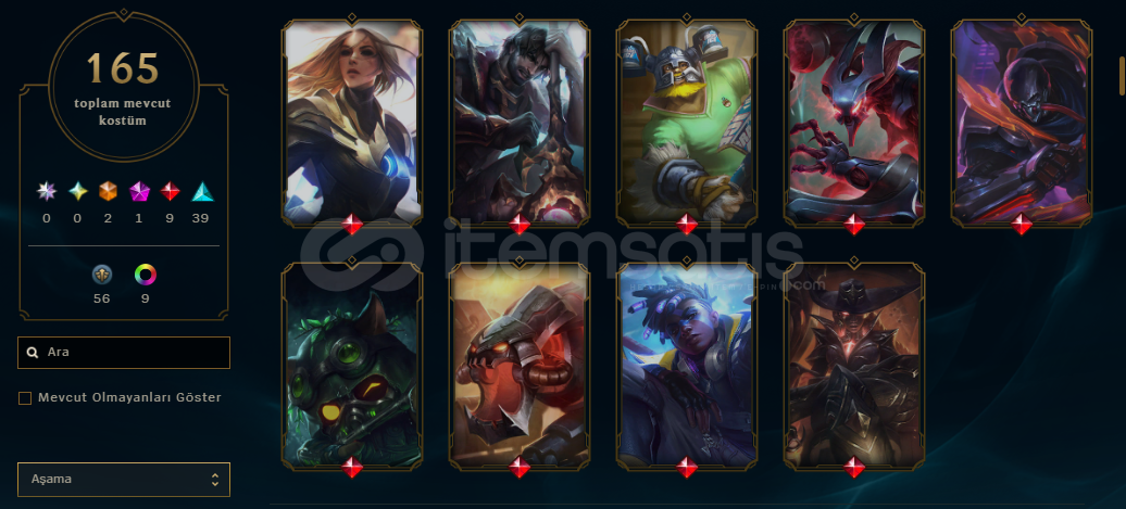 HESAPTA TOPLAM 165 SKİN MEVCUT