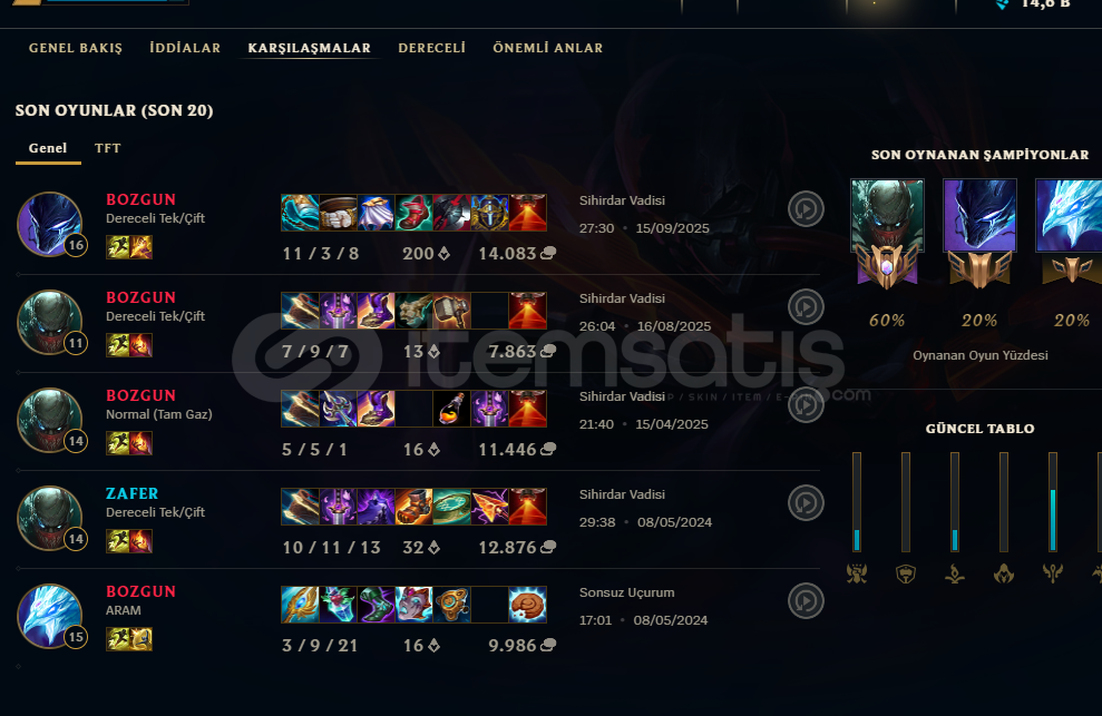 HESAP TURKEY SUNUCUHESAP 175 LEVELHESAPTA TOPLAM 165 SKİN MEVCUTHESAPTA 155 HERO MEVCUTHESAP SATIN ALDIKTAN SONRA MAİL-ŞİFRE DEĞİŞTİREBİLİRSİNİZHESAP SEVİYESİ 175 LEVEL