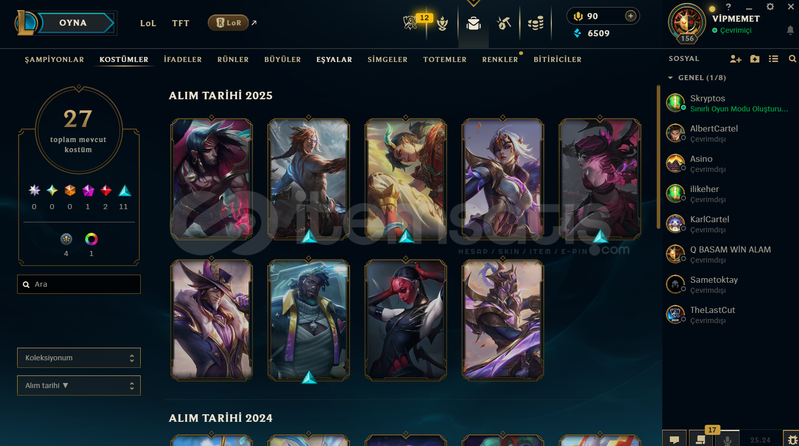 HESAPTA 27 SKİN MEVCUT. HESAP SEVİYESİ 156 LEVEL. HESAP TURKEY SUNUCU. HESAPTA BAN VB HİÇBİR SORUN YOKTUR. HESAP SATIN ALDIKTAN SONRA MAİL-ŞİFRE-TELEFON DEĞİŞTİREBİLİRSİNİZ. HESAPTA 104 HERO MEVCUT. Ayrıntı için dmşimdiden hayırlı olsunpazarlık vardır