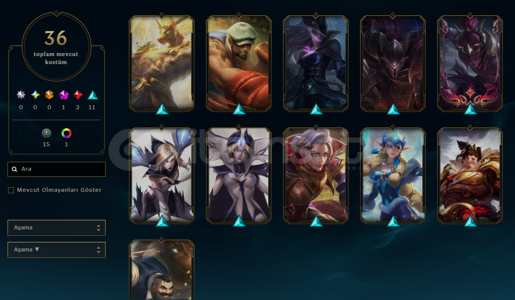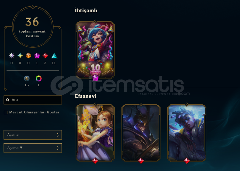 HESAPTA 36 ADET SKİN MEVCUT