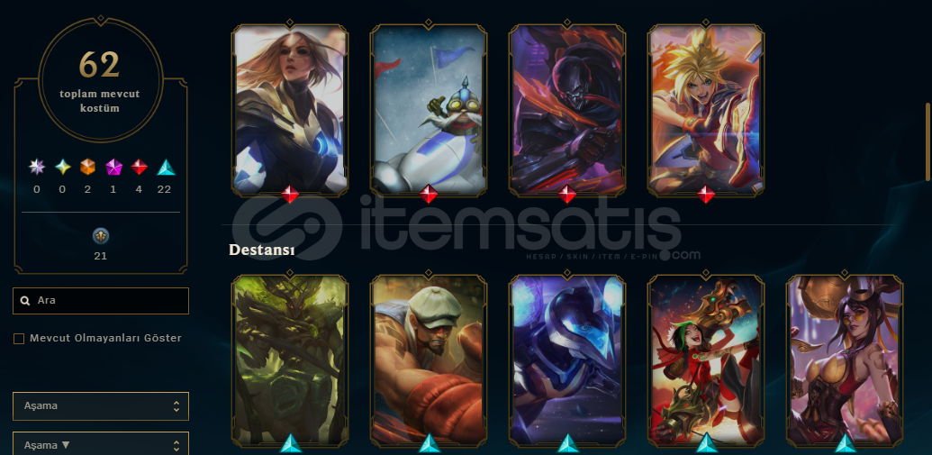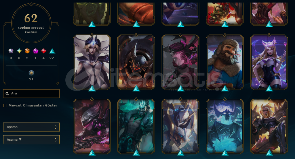 HESAP TURKEY SUNUCUHESAP UNRANKEDHESAP SEVİYHESİ 276 LEVELHESAPTA 62 ADET SKİN MEVCUTHESAPTA 116 ADET HERO MEVCUTHESAP SATIN ALDIKTAN SONRA MAİL-ŞİFRE DEĞİŞTİREBİLİRSİNİZ