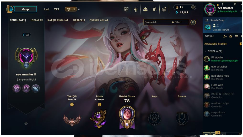 Hesap görsellerde gözüktüğü gibidir kontrol edilmeden ilan açılmamaktadır.Hesapta hiçbir uyarı/ban yoktur.Satın alımı yaparken ekran kaydı açmayı unutmayınız...Satın alma işlemi tamamlandıktan sonra tarafınıza kullanıcı adı ve şifre teslim edilir. İlk girişinizi yaptıktan sonra hesabı kendi e-posta adresinizle güncell...