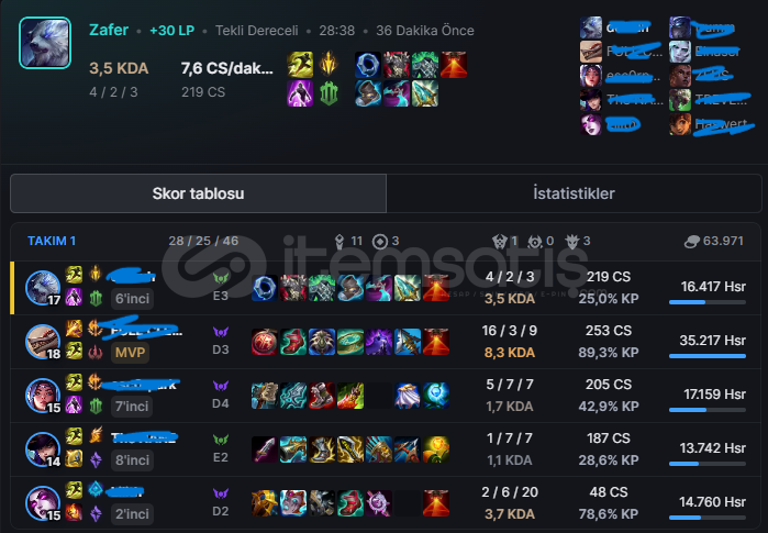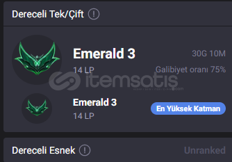 TR LOL ZÜMRÜT 3 %75 WİNRATE FRESH HESAP