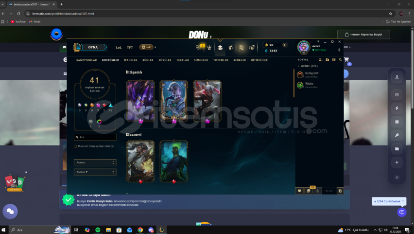 TR-Mail degişen ucuz hesap Lol