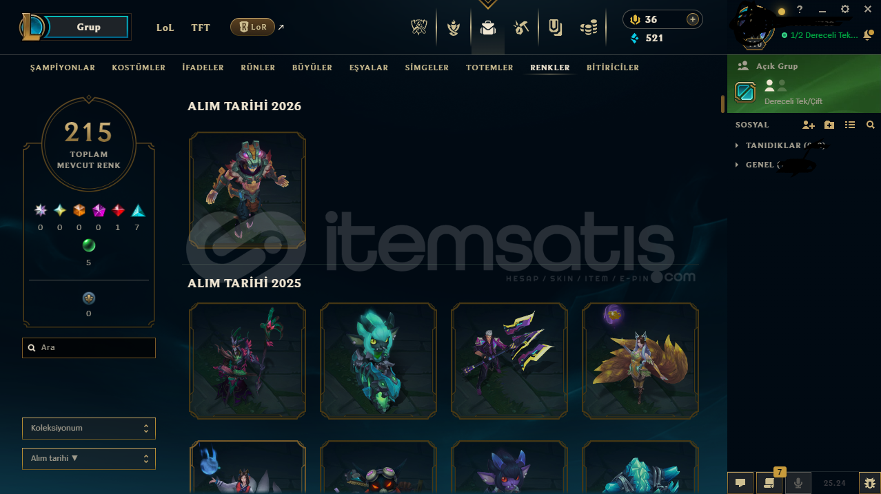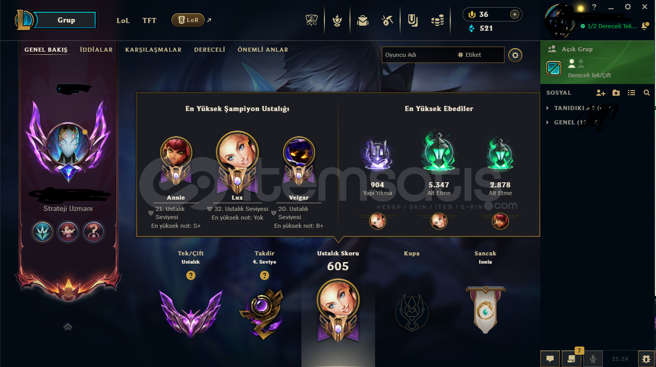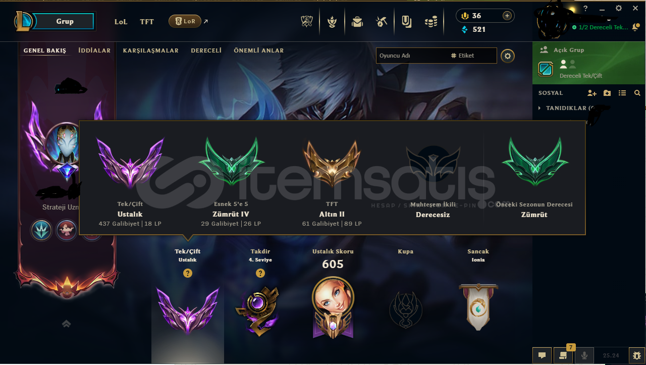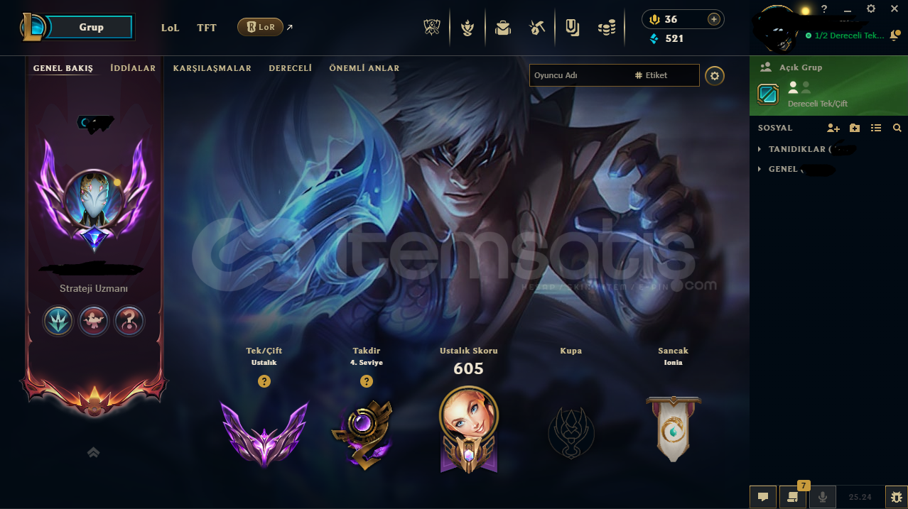 Dolu dolu kozmetikli grandmaster MMRlı hesaptır.
