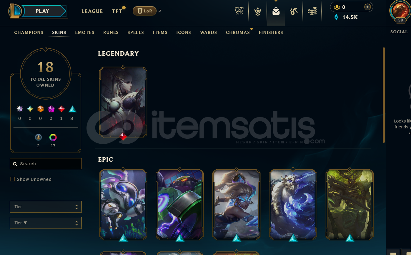 TR Plat 2 | 18 Kostüm - 14K Mö | LoL Hesap
