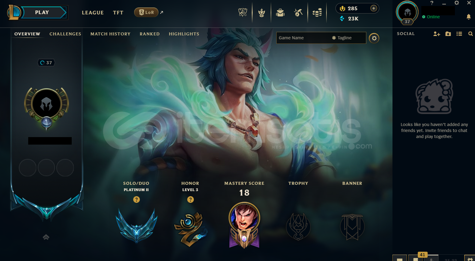 Hesap TR Tek/Çift Plat 2 - 75 Lp - 6 Win 11 Lose TR LoL Hesabıdır.