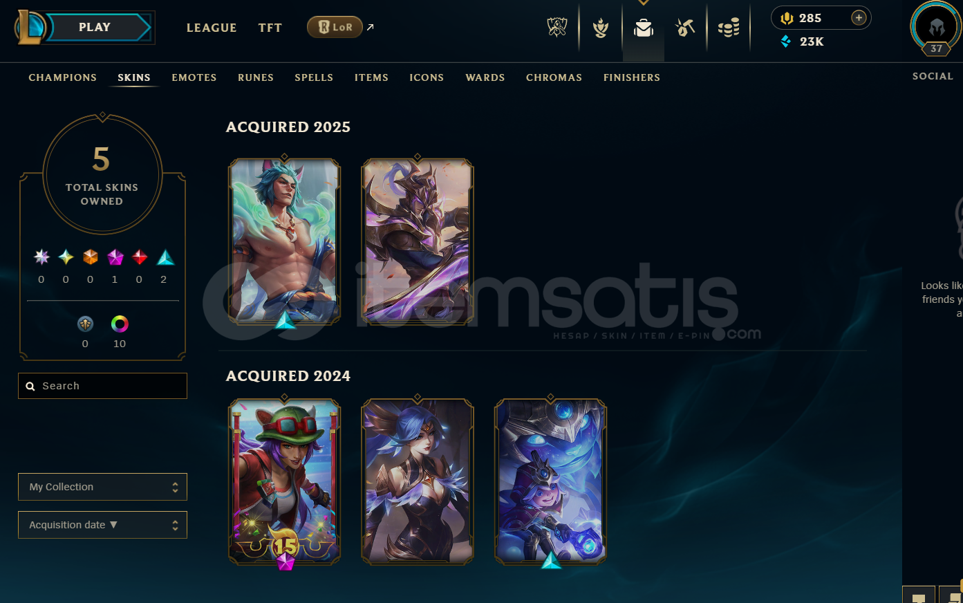 TR Plat 2 | 5 Kostüm - 23K Mö | LoL Hesap