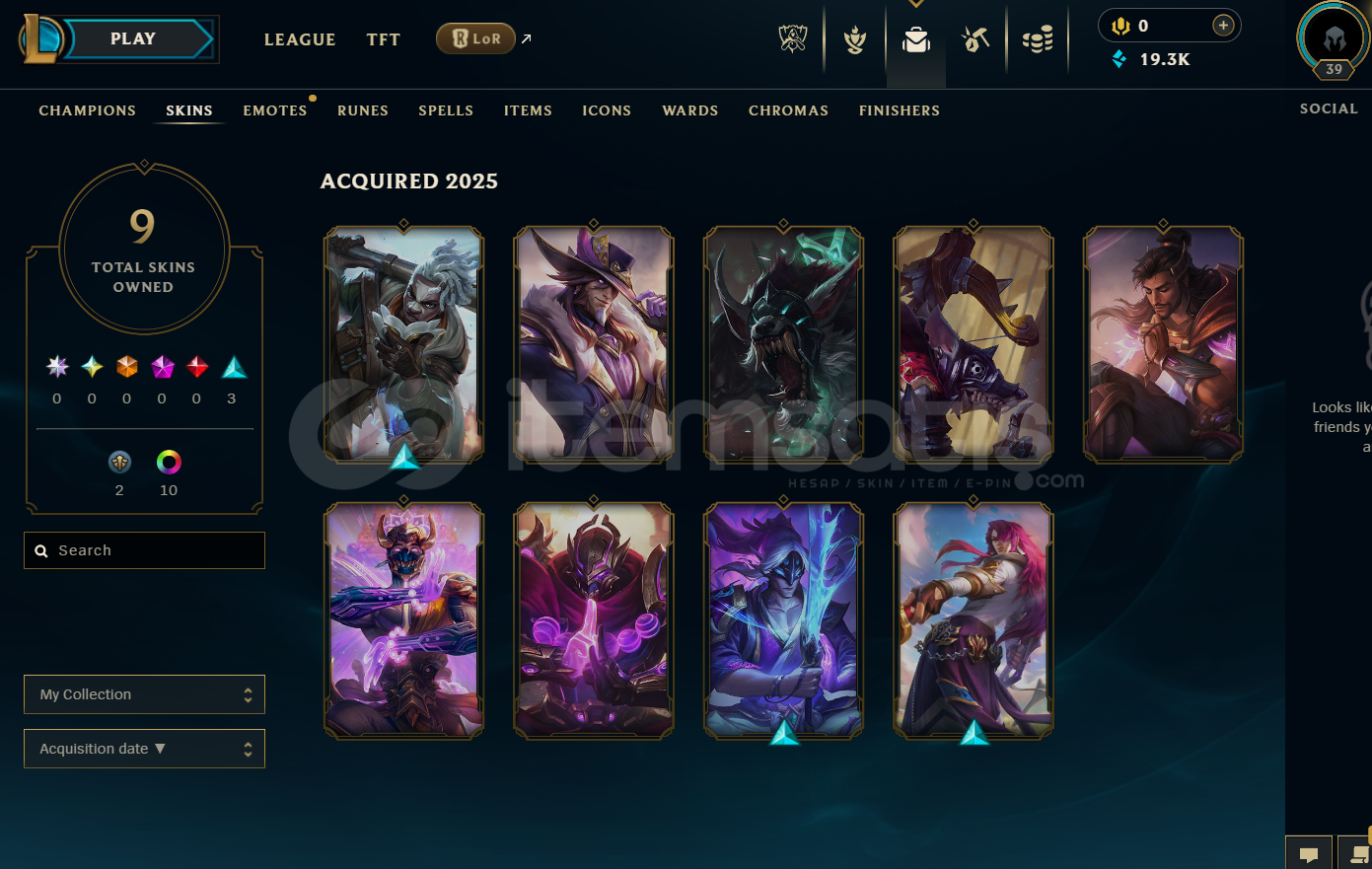 TR Plat 2 | 9 Kostüm - 19K Mö | LoL Hesap