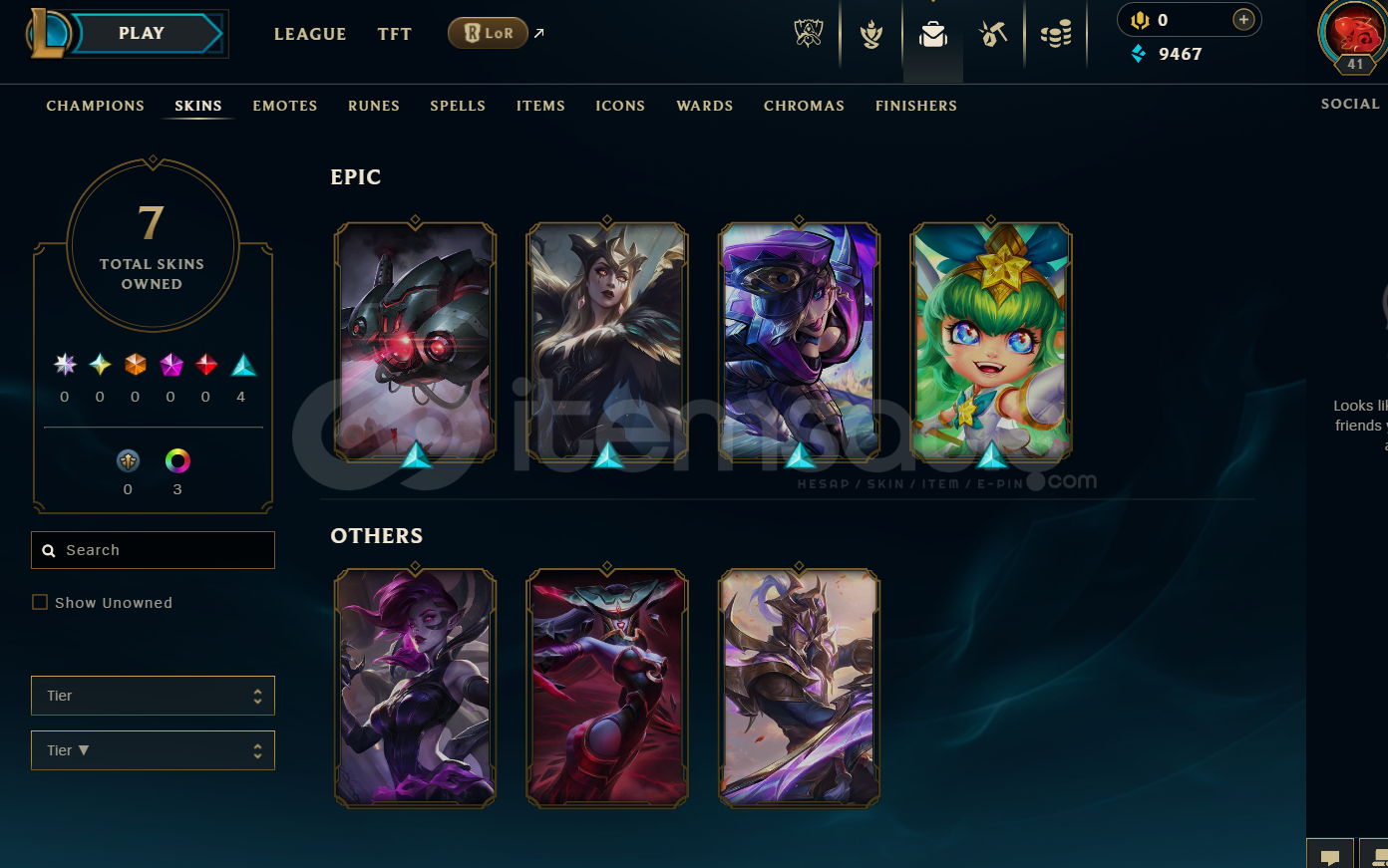 TR Plat 3 | 7 Kostüm - 11K Mö | LoL Hesap