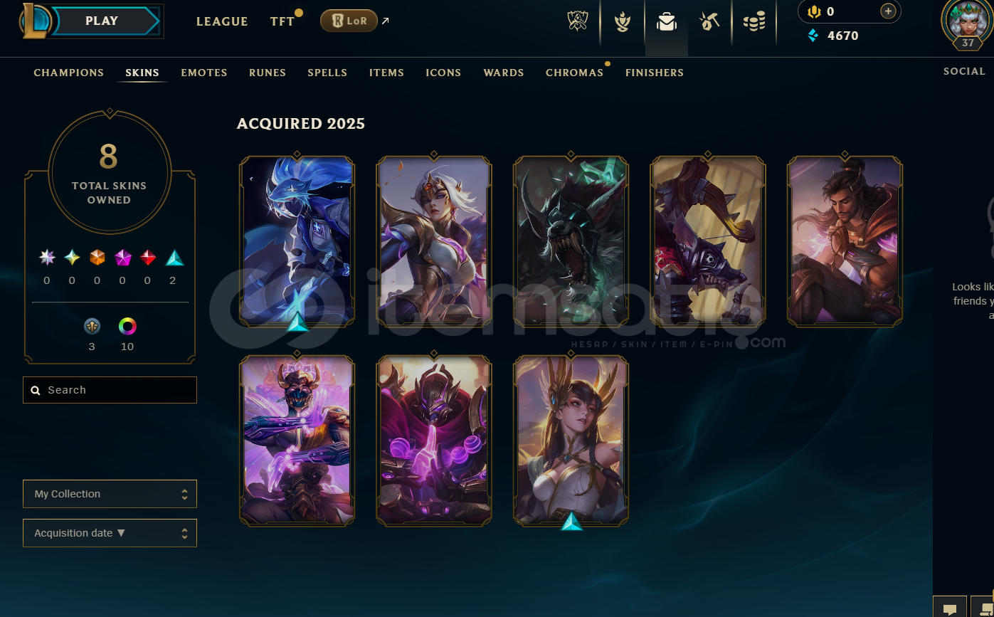Hesap TR Tek/Çift Plat 4 - 76 Lp - 20 Win 15 Lose 57 Winrate - Esnek Plat 2 - 40 Lp - 2 Win 2 Lose 50 Winrate TR LoL Hesabıdır. Geçen Sezonu Plat Bitirmiştir.