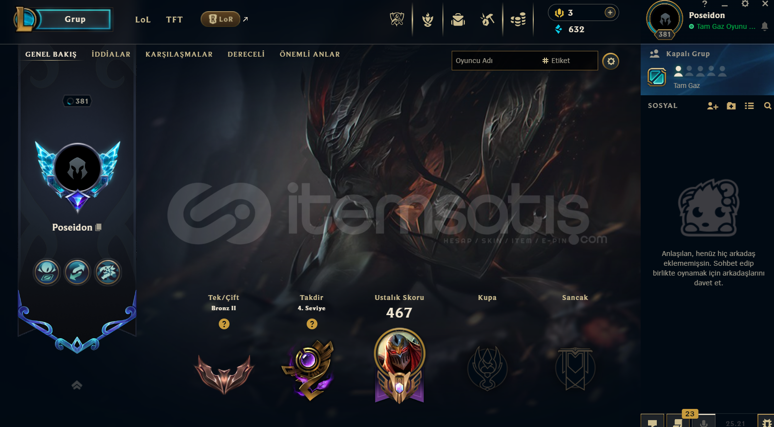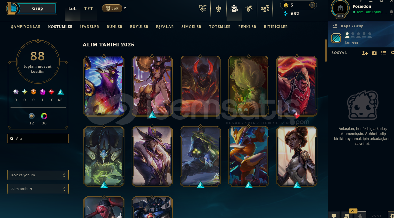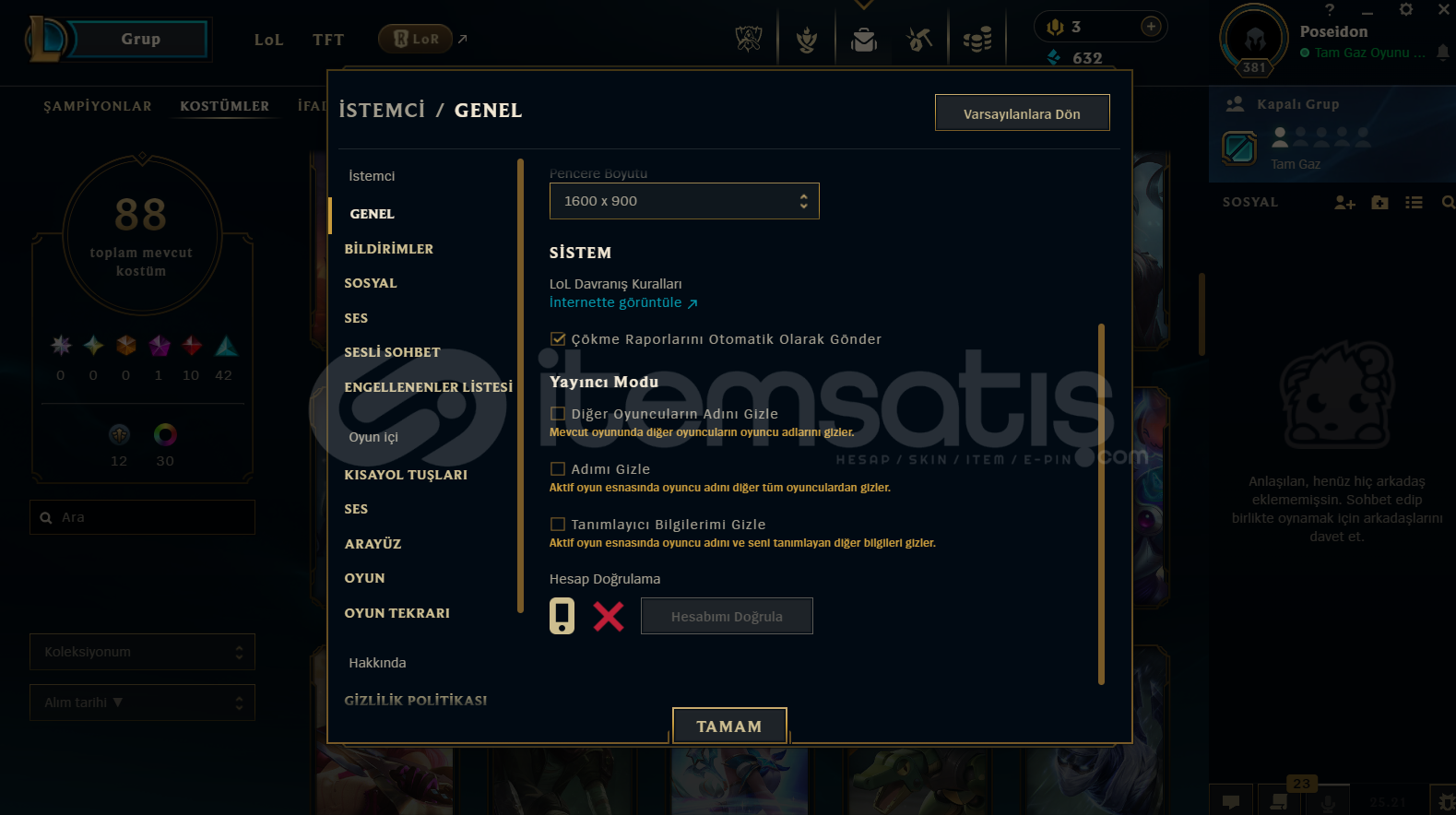 LOL TR SERVER 88 SKİN BRONZE 1 DAKİKA BANI VARDIR MAİL DEĞİŞİYOR