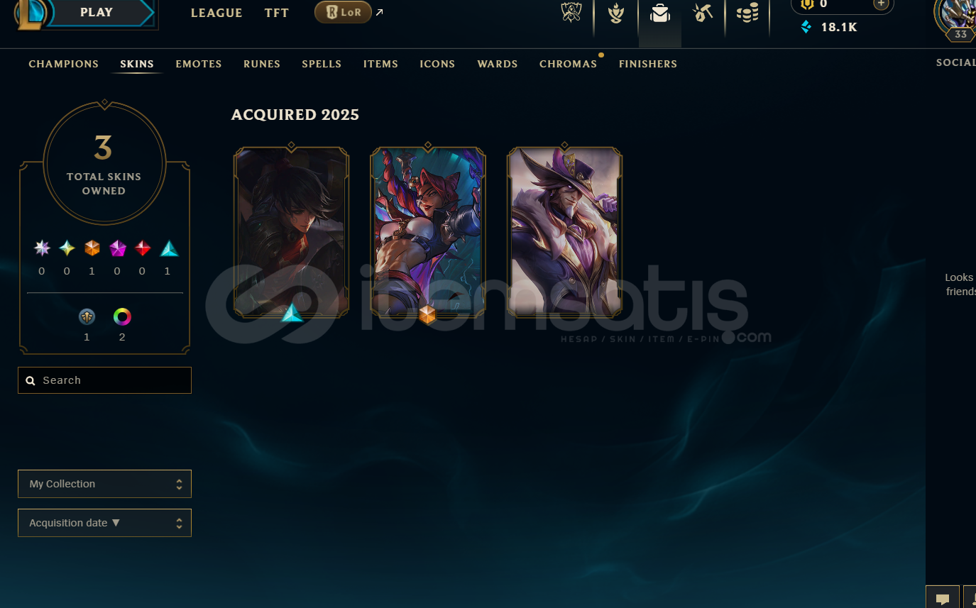 TR Silver 1 | 3 Kostüm - 18K Mö | LoL Hesap