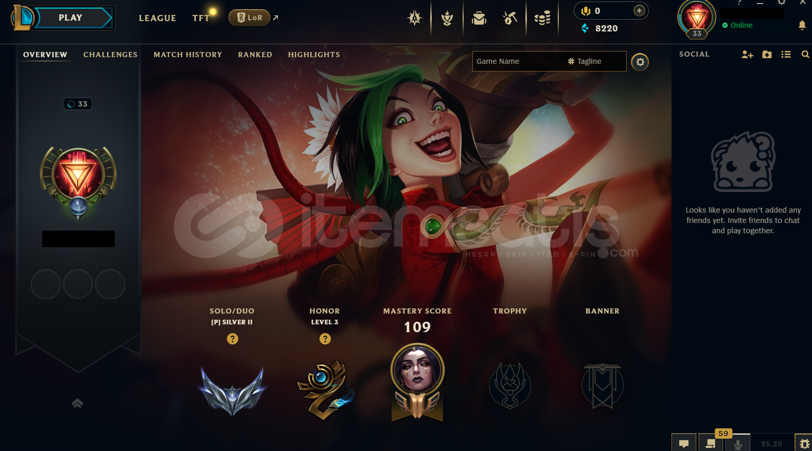 • Hesap TR Tek/Çift Silver 2 - 76 Lp - 1 Win 0 Lose TR LoL Hesabıdır.