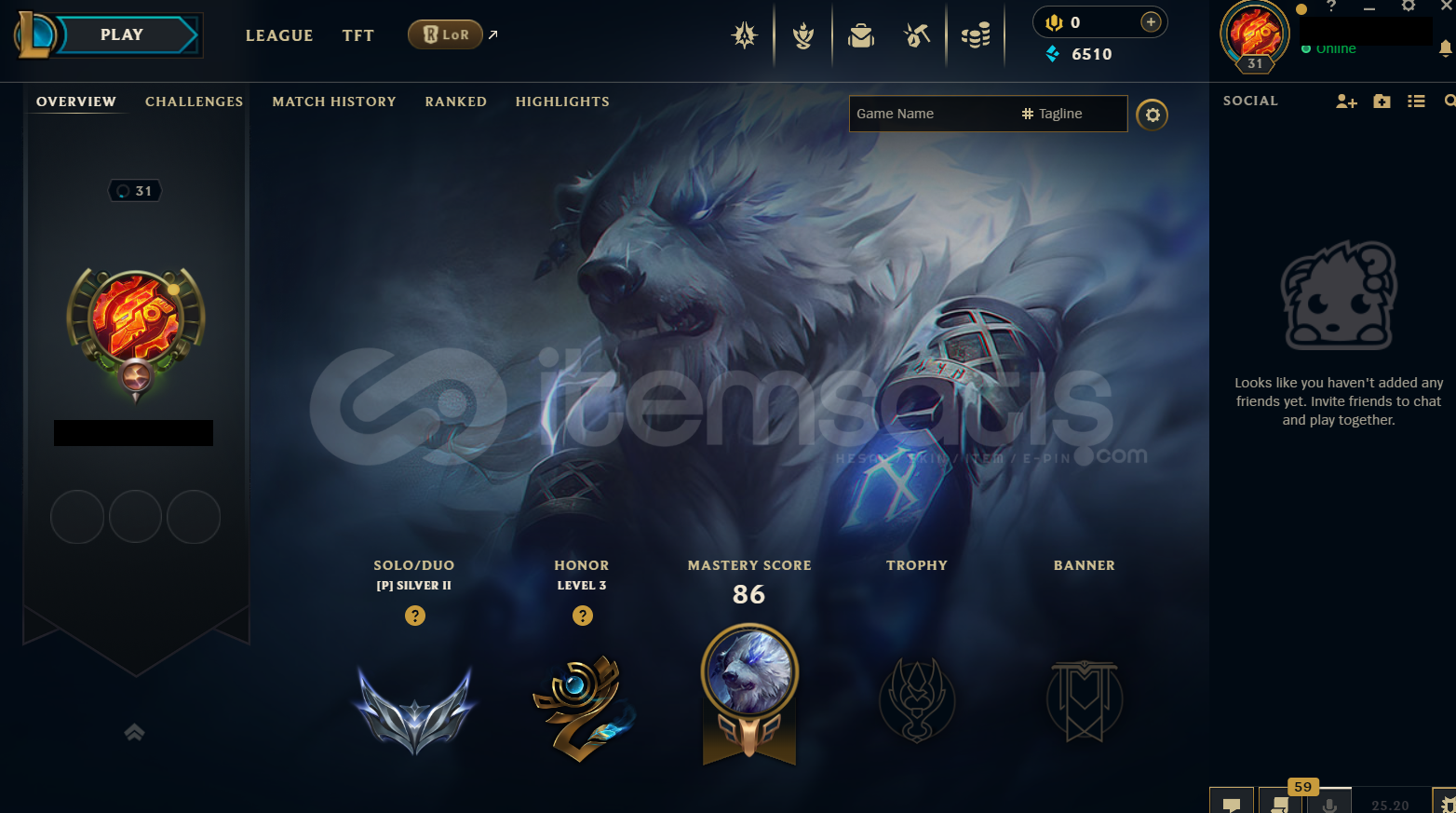 • Hesap TR Tek/Çift Silver 2 - 76 Lp - 1 Win 2 Lose TR LoL Hesabıdır.