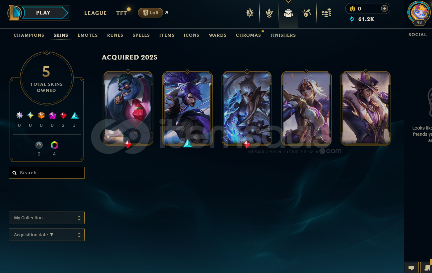 TR Silver 2 | 5 Kostüm - 61K Mö | LoL Hesap