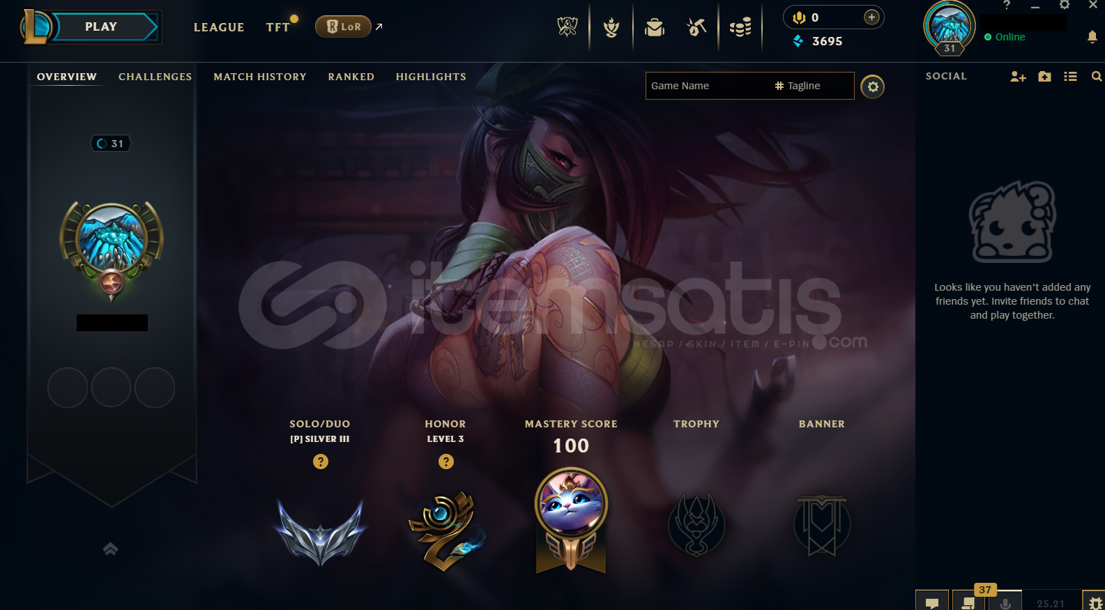 Hesap TR Tek/Çift Silver 3 - 71 Lp - 1 Win 1 Lose TR LoL Hesabıdır.