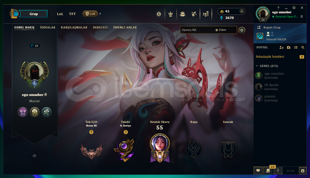 TR SMURFLEMELİK +30 LVL HESAP Smurf kasacak vaktim olmadığı için satıyorum alıcısına şimdiden hayırlı olsun.