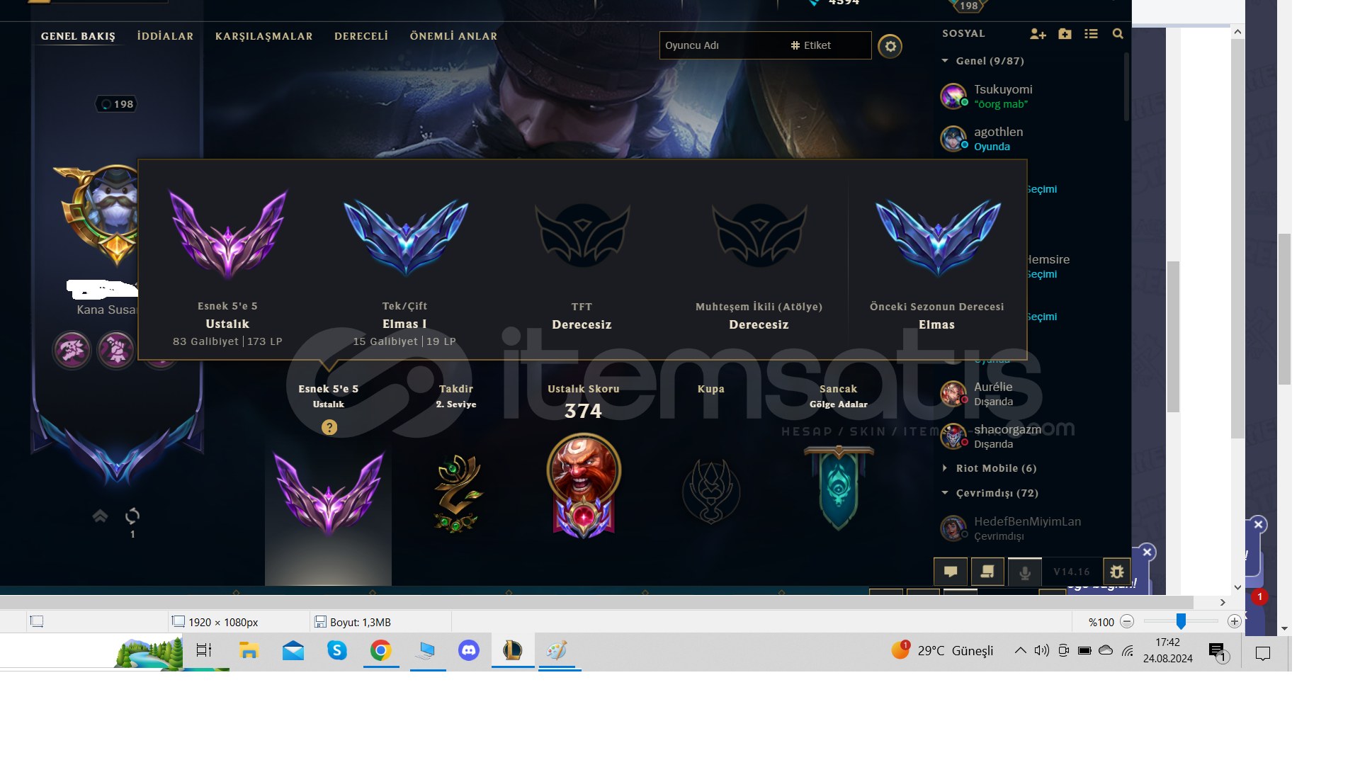 tr sunucusunda tek çift elmas 1 esnek master hesabımı satıyorum yüksek lp geliyor herhangi bir banı yok güvenilir hesap paraya ihtiyacım var diye satıyorum ufak pazarlık payı vardır
