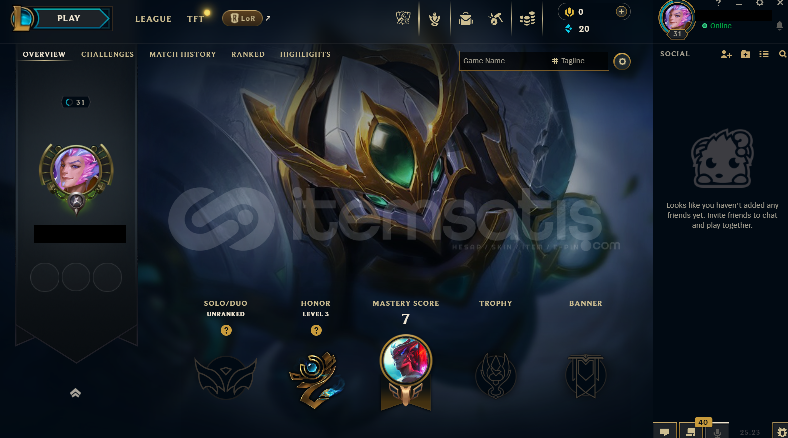 HESAP DETAYLARI:Hesap hiç ban yememiştir ve takdir seviyesi 3 dür.Hesap TR Unranked LoL Hesabıdır.İçerisinde 1 Kostüm 24 Hero ve 3 Adet İade Hakkı Mevcuttur.HESAP HAKKINDA:Kendi mail adresinize kayıt edebilir, etkinleştirmeyi kaldırabilir ve şifresini değiştirebilirsiniz.Hesaplarımızda hiç bir sıkıntı çıkmamaktadır.Herhangi bir sıkıntıda en iyi deste...