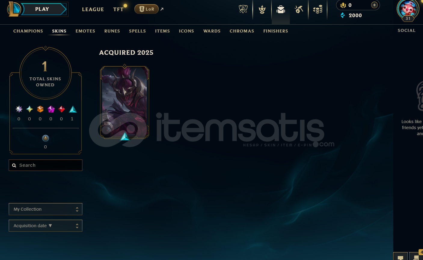 TR Unranked | 1 Kostüm - 25 Hero | LoL Hesap