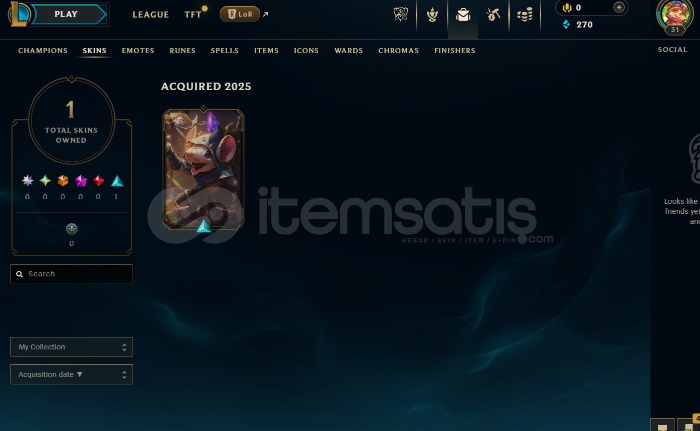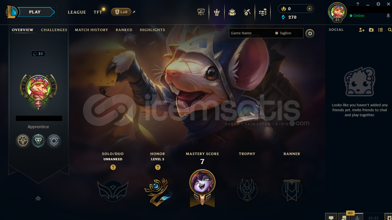 HESAP DETAYLARI:Hesap hiç ban yememiştir ve takdir seviyesi 3 dür.Hesap TR Unranked LoL Hesabıdır.İçerisinde 1 Kostüm 31 Hero ve 3 Adet İade Hakkı Mevcuttur.HESAP HAKKINDA:Kendi mail adresinize kayıt edebilir, etkinleştirmeyi kaldırabilir ve şifresini değiştirebilirsiniz.Hesaplarımızda hiç bir sıkıntı çıkmamaktadır.Herhangi bir sıkıntıda en iyi deste...