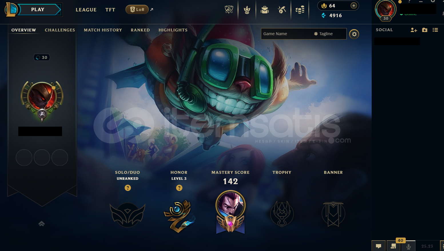Hesap TR Unranked LoL Hesabıdır.