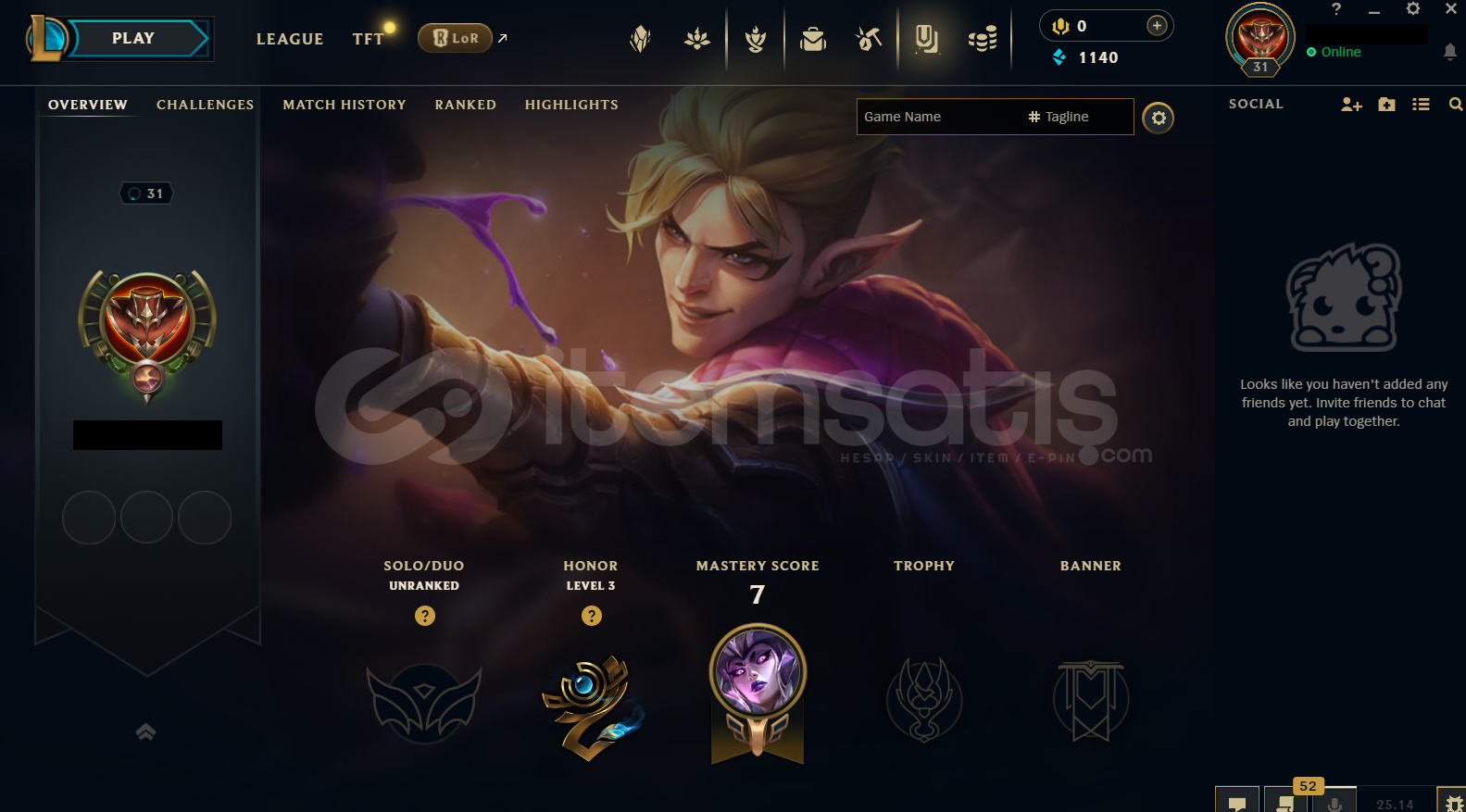 Hesap TR Unranked LoL Hesabıdır.