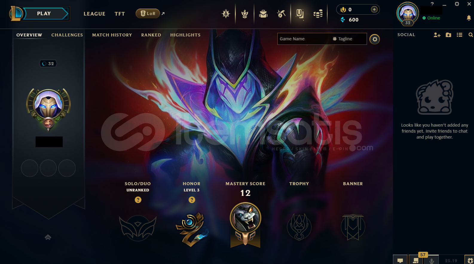 • Hesap TR Unranked LoL Hesabıdır.