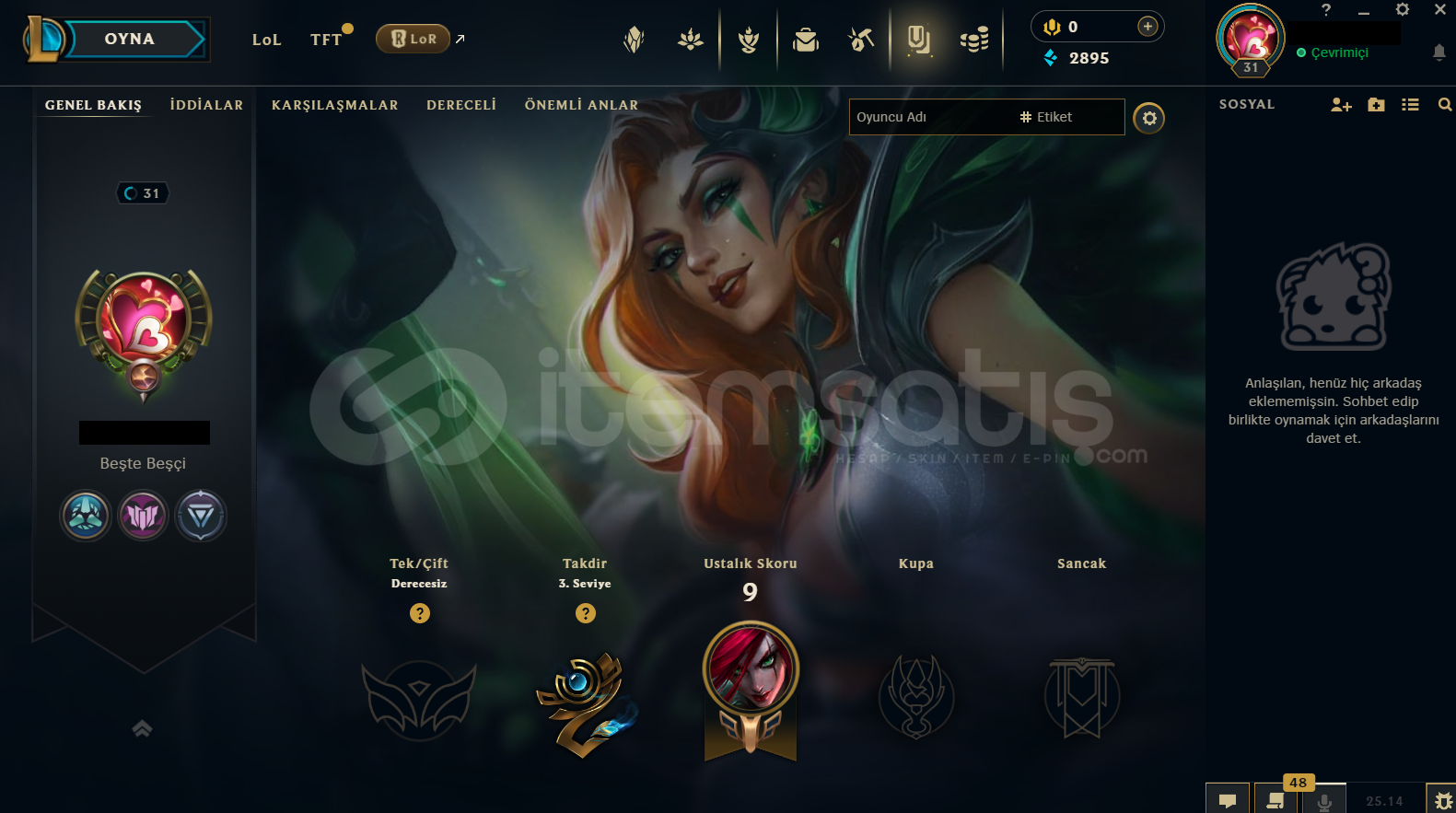HESAP DETAYLARI:Hesap hiç ban yememiştir ve takdir seviyesi 3 dür.Hesap TR Unranked LoL Hesabıdır.İçerisinde 2 Kostüm 22 Hero 3 Adet İade Hakkı Mevcuttur.HESAP HAKKINDA:Kendi mail adresinize kayıt edebilir, etkinleştirmeyi kaldırabilir ve şifresini değiştirebilirsiniz.Hesaplarımızda hiç bir sıkıntı çıkmamaktadır.Herhangi bir sıkıntıda en iyi deste...