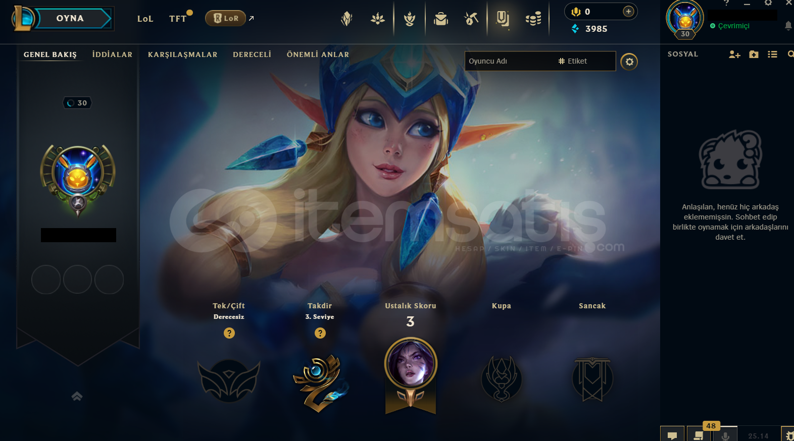 HESAP DETAYLARI:Hesap hiç ban yememiştir ve takdir seviyesi 3 dür.Hesap TR Unranked LoL Hesabıdır.İçerisinde 2 Kostüm 23 Hero 3 Adet İade Hakkı Mevcuttur.HESAP HAKKINDA:Kendi mail adresinize kayıt edebilir, etkinleştirmeyi kaldırabilir ve şifresini değiştirebilirsiniz.Hesaplarımızda hiç bir sıkıntı çıkmamaktadır.Herhangi bir sıkıntıda en iyi deste...