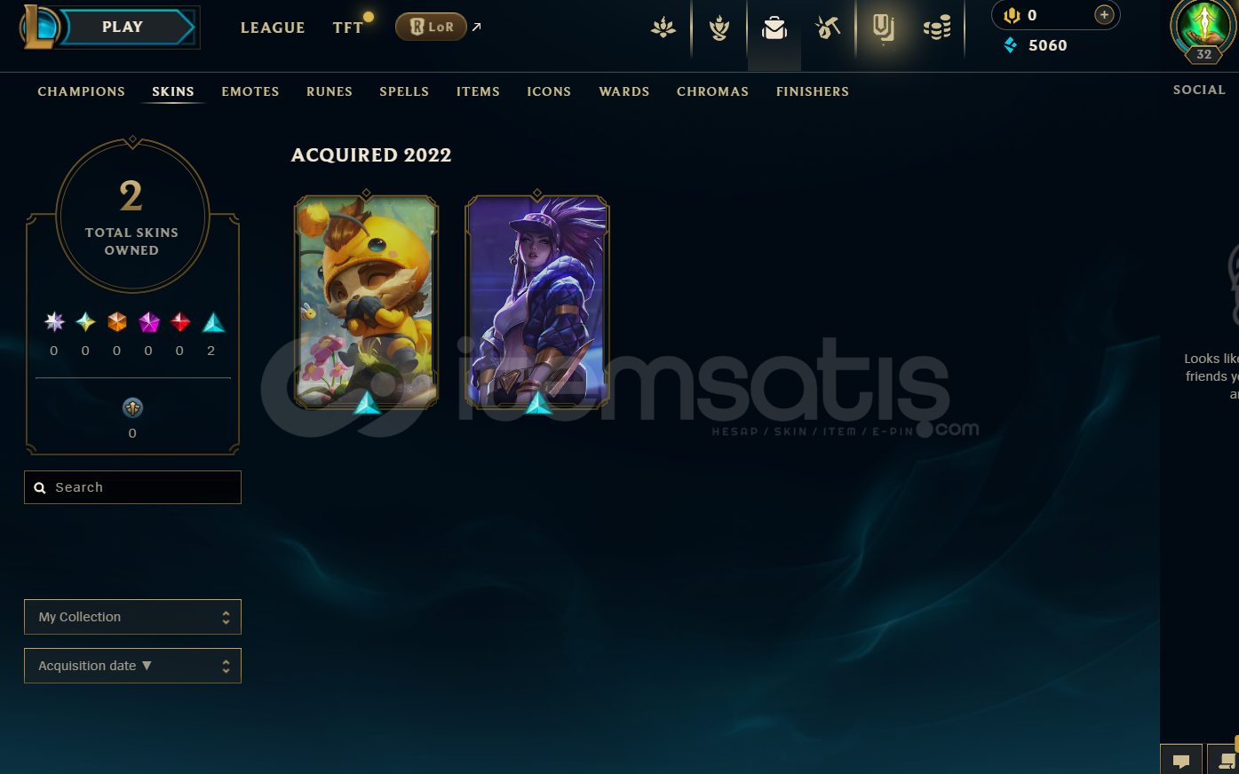 TR Unranked | 2 Kostüm - 24 Hero |LoL Hesap