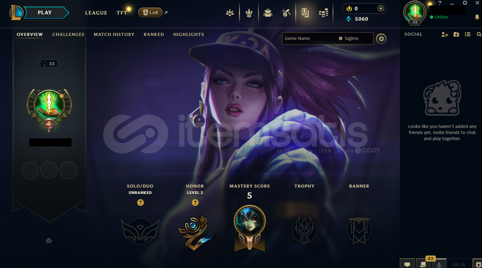 HESAP DETAYLARI:Hesap hiç ban yememiştir ve takdir seviyesi 3 dür.Hesap TR Unranked LoL Hesabıdır.İçerisinde 5060 Mavi Öz 2 Kostüm 24 Hero ve 3 Adet İade Hakkı Mevcuttur.HESAP HAKKINDA:Kendi mail adresinize kayıt edebilir, etkinleştirmeyi kaldırabilir ve şifresini değiştirebilirsiniz.Hesaplarımızda hiç bir sıkıntı çıkmamaktadır.Herhangi bir sıkınt...