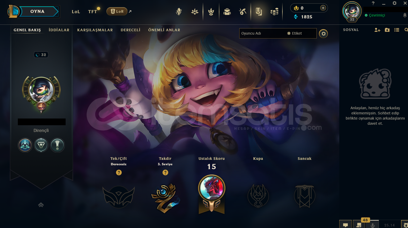 Hesap TR Unranked LoL Hesabıdır.