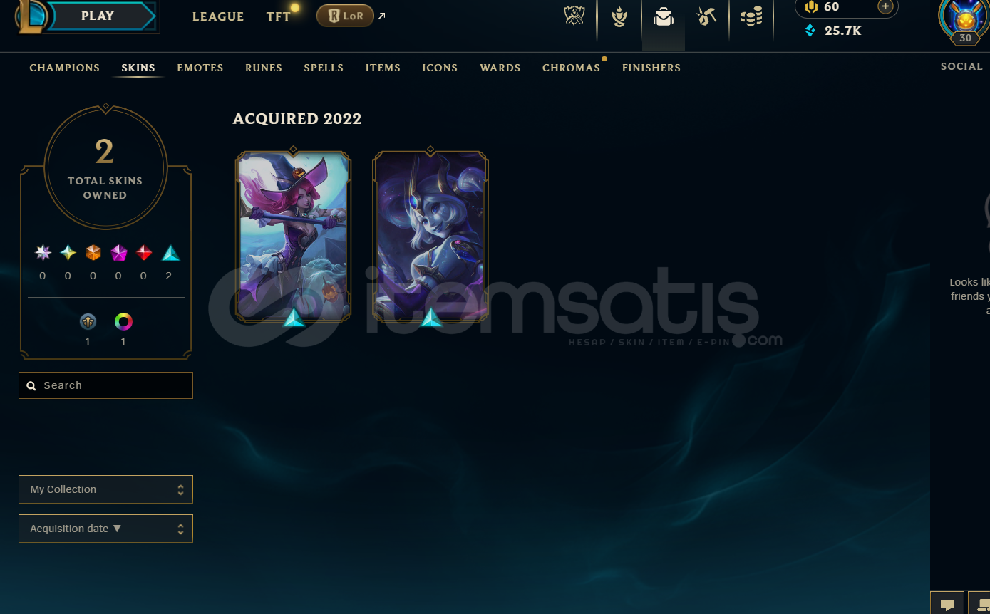 TR Unranked | 2 Kostüm - 25K Mö| LoL Hesap