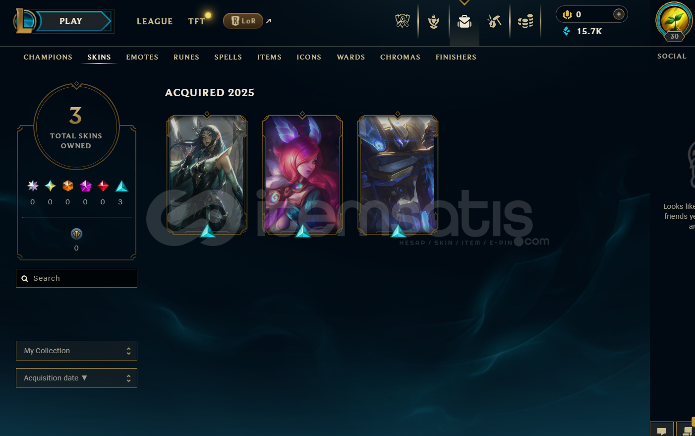 TR Unranked | 3 Kostüm - 15K Mö | LoL Hesap