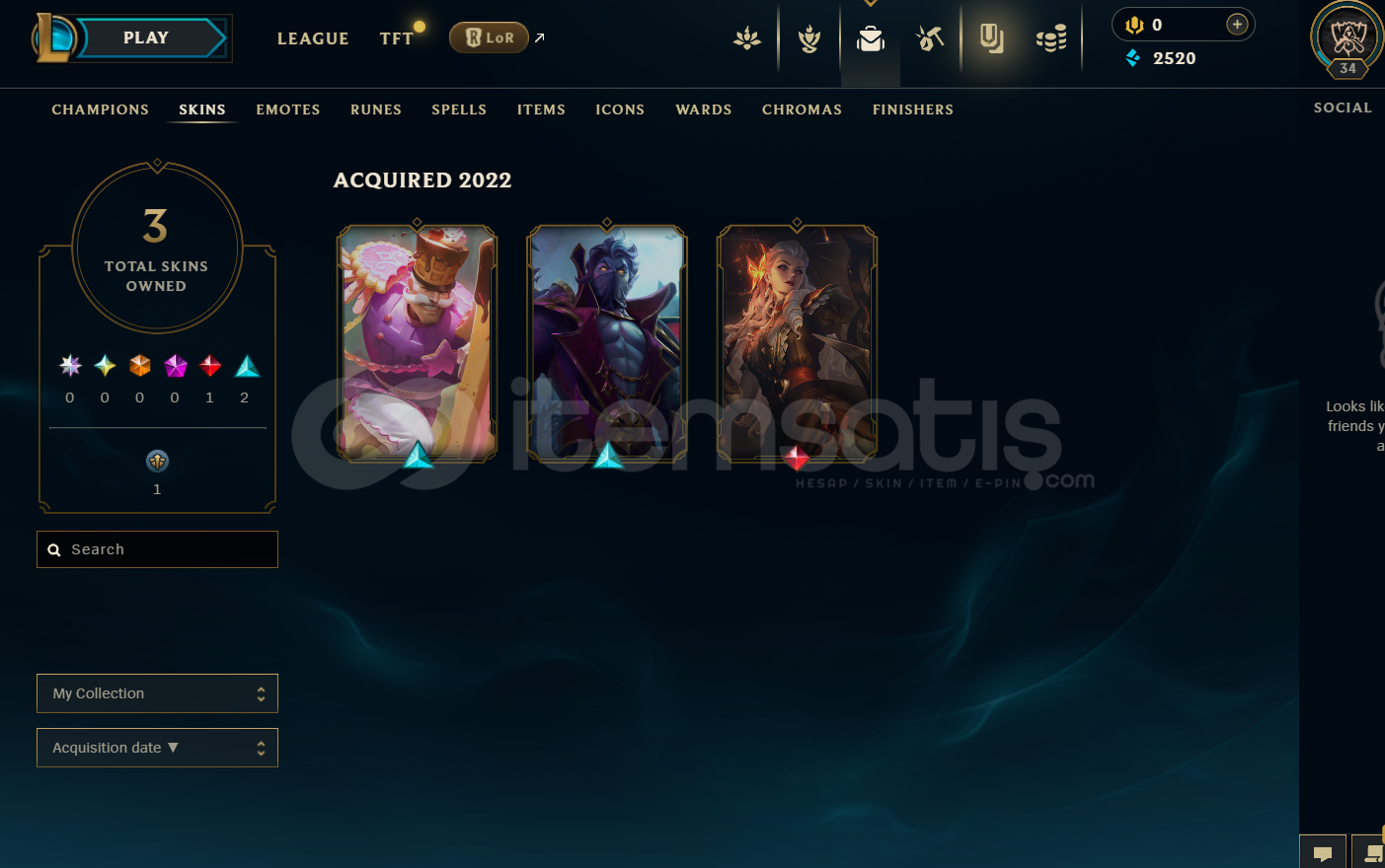 TR Unranked | 3 Kostüm - 20 Hero |LoL Hesap