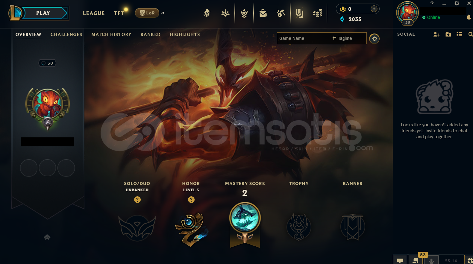 Hesap TR Unranked LoL Hesabıdır.