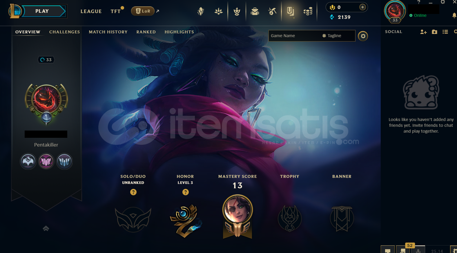 Hesap TR Unranked LoL Hesabıdır.