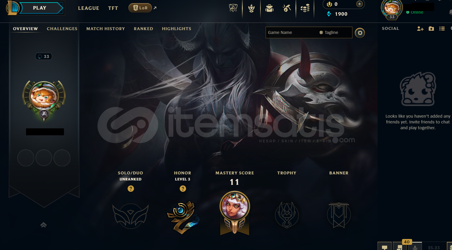HESAP DETAYLARI:Hesap hiç ban yememiştir ve takdir seviyesi 3 dür.Hesap TR Unranked LoL Hesabıdır.İçerisinde 3 Kostüm 23 Hero ve 3 Adet İade Hakkı Mevcuttur.HESAP HAKKINDA:Kendi mail adresinize kayıt edebilir, etkinleştirmeyi kaldırabilir ve şifresini değiştirebilirsiniz.Hesaplarımızda hiç bir sıkıntı çıkmamaktadır.Herhangi bir sıkıntıda en iyi deste...