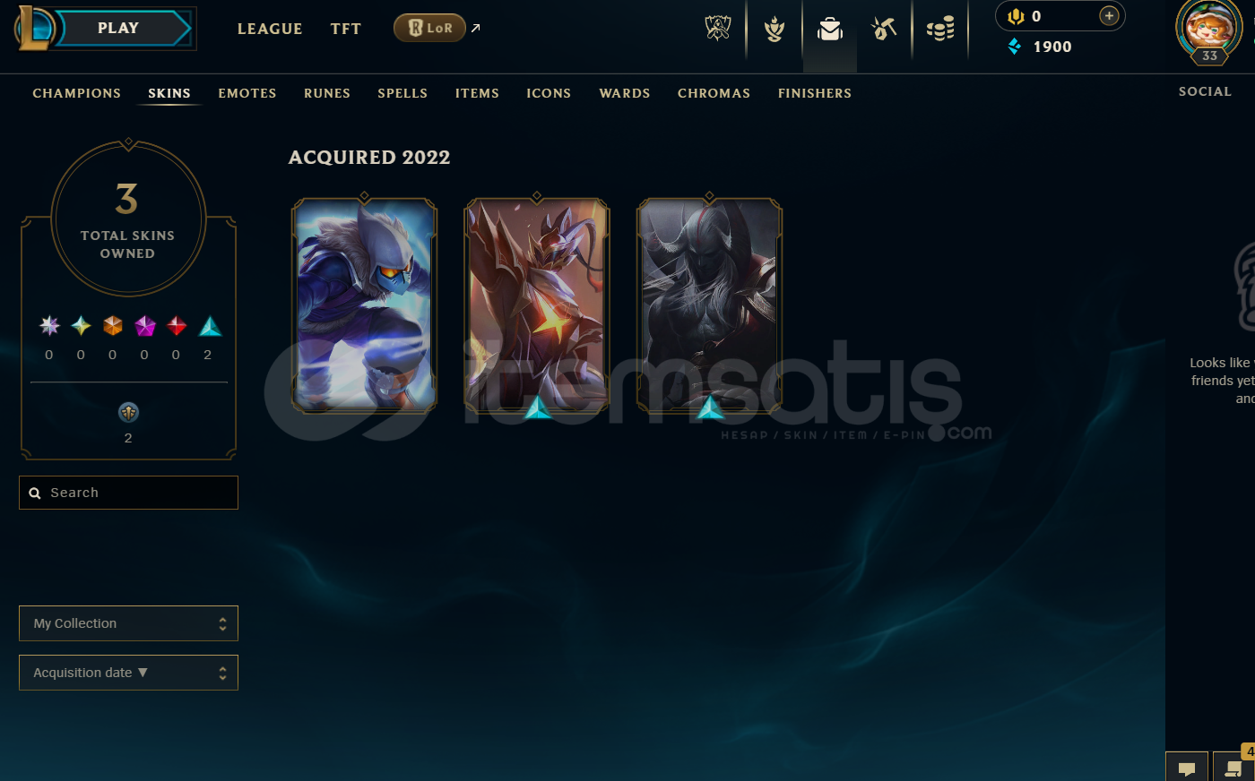 TR Unranked | 3 Kostüm - 23 Hero | LoL Hesap