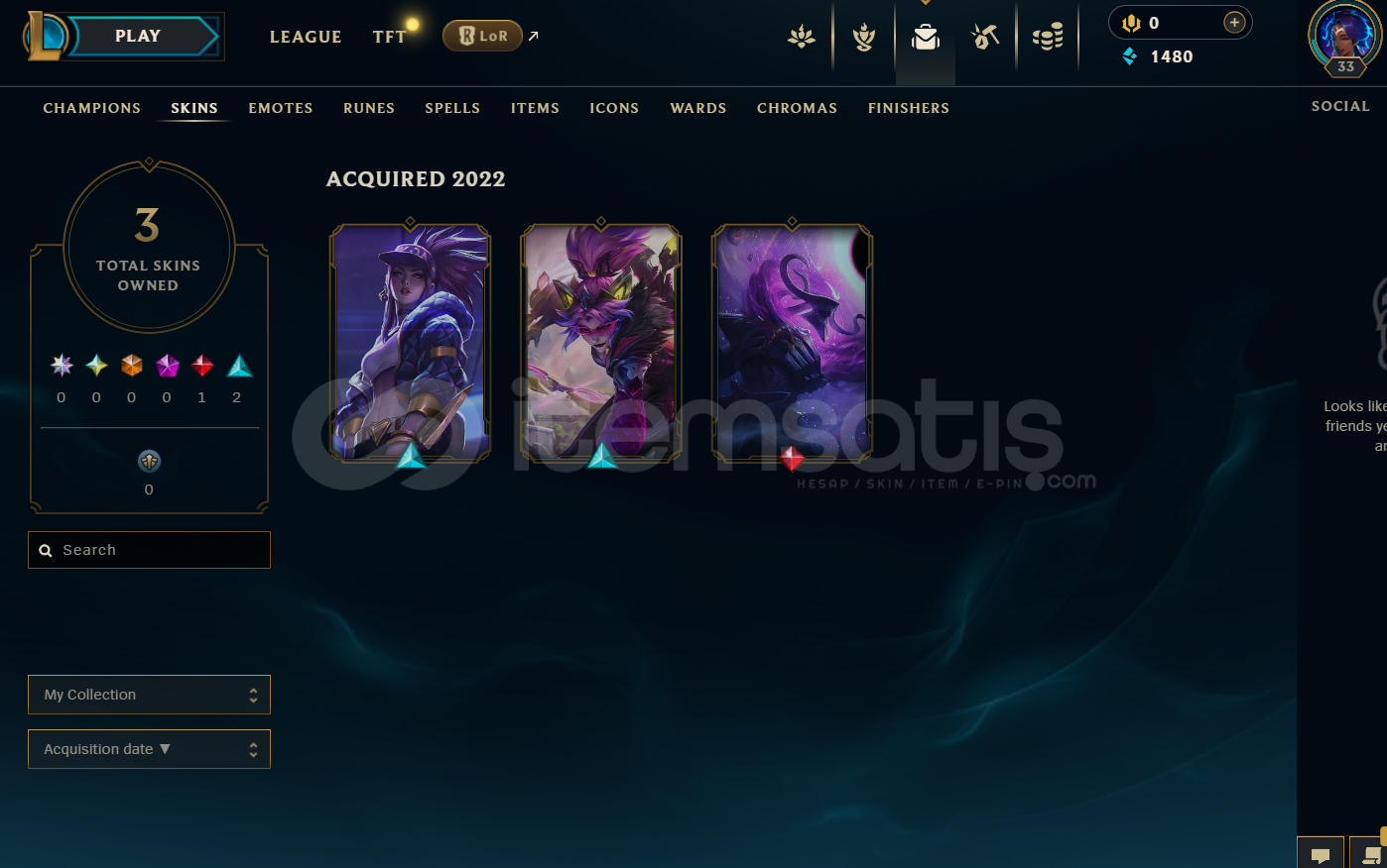 TR Unranked | 3 Kostüm - 24 Hero| LoL Hesap