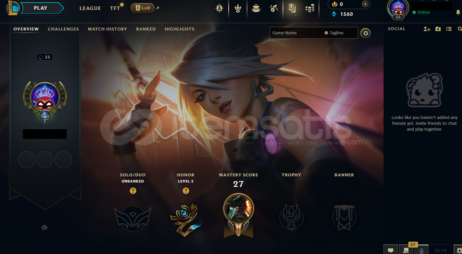 • Hesap TR Unranked LoL Hesabıdır.